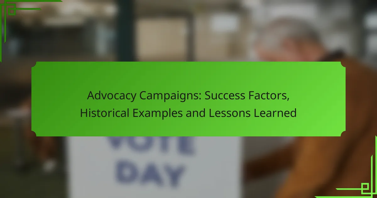 Advocacy campaigns play a crucial role in shaping public policy and driving societal change, with success hinging on factors such as clear messaging, strong leadership, and community engagement. Historical examples, including the Civil Rights Movement and marriage equality efforts, illustrate the effectiveness of organized advocacy in achieving significant outcomes. By leveraging strategic partnerships and data-driven approaches, organizations can enhance their impact and mobilize support for their causes.