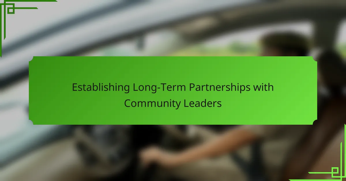 Establishing long-term partnerships with community leaders is essential for fostering trust and collaboration in urban areas. By aligning your objectives with their community goals, you can create sustainable relationships that enhance your organization’s visibility and impact. Intentional strategies, such as regular communication and joint initiatives, are key to nurturing these valuable connections.